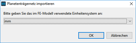 Anschließend ist die Längeneinheit, in der der Planetenträger konstruiert wurde, im Dialogfenster auszuwählen. Das Planetenträgernetz wird zunächst unabhängig vom Getriebemodell im Raum platziert.
