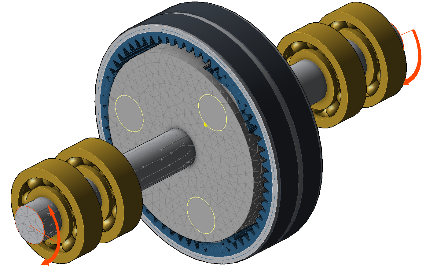 | Entscheidend für die Positionierung - als auch dem späteren Fangen der Koppelungsknoten - ist eine korrekte Bedatung der Koppelungen, die mit dem FE-Planetenträger in Berührung stehen. Hierbei sind die Attribute Innen- und Außendurchmesser sowie Breite und Position von Bedeutung. |