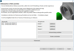Per Klick auf "Positionieren" wird die Bezugswelle ausgerichtet. Die Bezugswelle kann auch noch nach Festlegung der Knotenpunkte getauscht werden. Dann wird automatisch die andere Welle an der Gehäuseachse zentriert. "Weiter" schließt die Positionierung der ersten Bezugswelle ab.