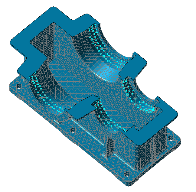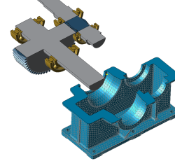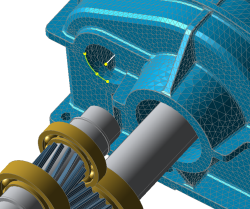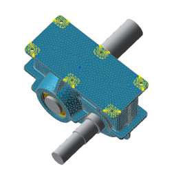In diesem Beispiel sind die Anlageflächen, in denen sich die Gehäusebohrungen für die Verschraubung mit dem Fundament befinden, leicht erhaben. Daher liegen alle Knotenpunkte in einer Ebene und können automatisch ausgewählt werden.